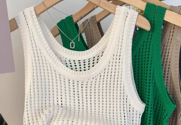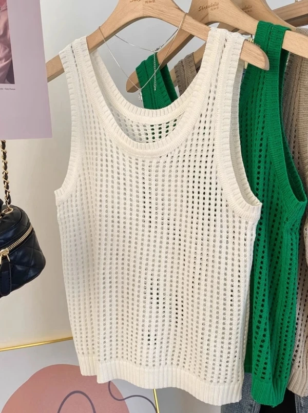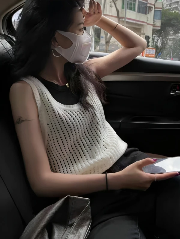 White Hollowed Knitted Sleeveless Top | Taeyong – NCT