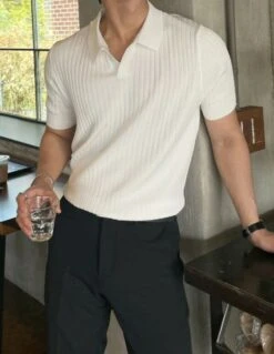 White Knit Short Sleeved Polo Shirt | Seungkwan – Seventeen