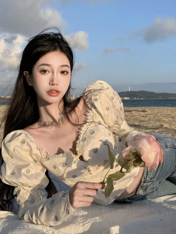 White Lace Puff Sleeve Floral Top | Sihyeon – Everglow