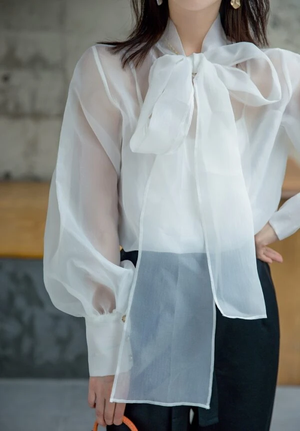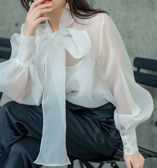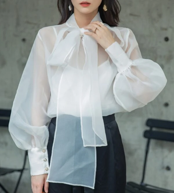 White Lantern Sleeve Bowknot Blouse | Olivia – Loona