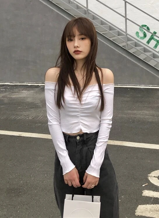 White Long Sleeve Lettuce Crop Top | Sana – Twice