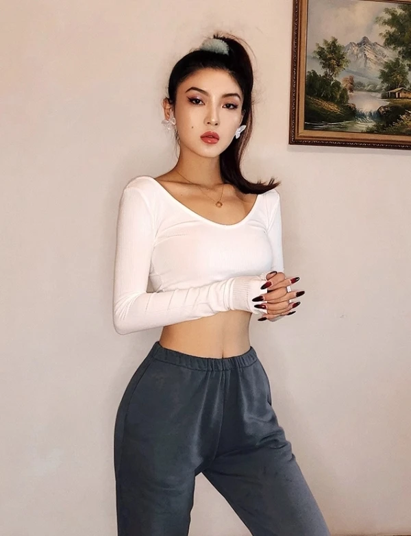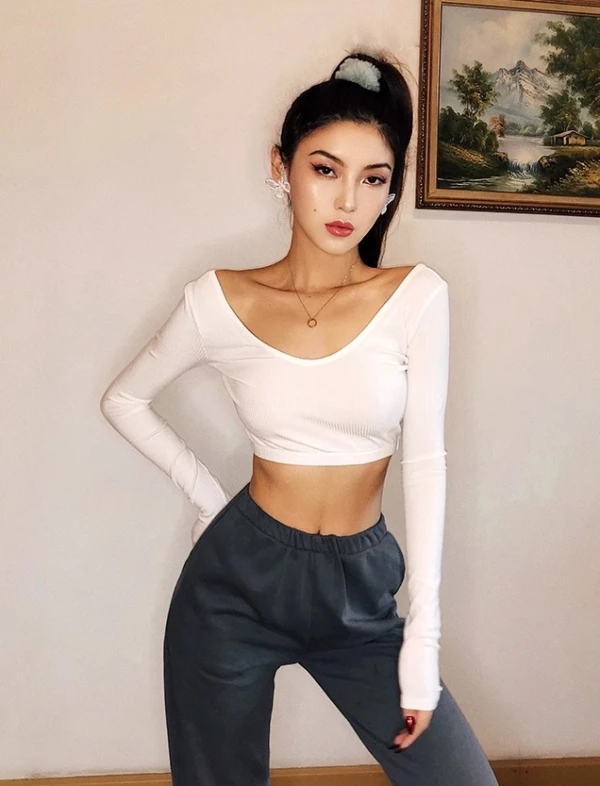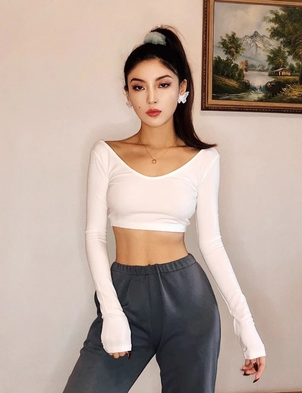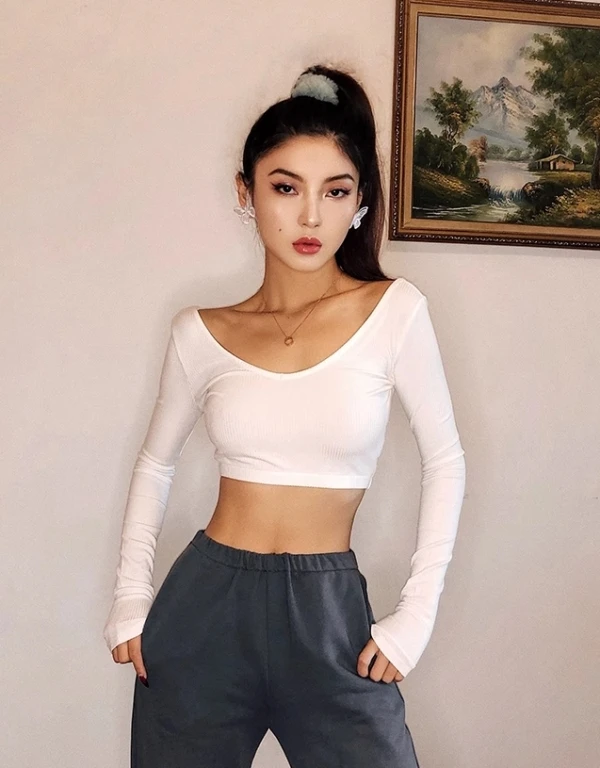 White Low-Neck Long Sleeve Crop Top | Lisa – BlackPink
