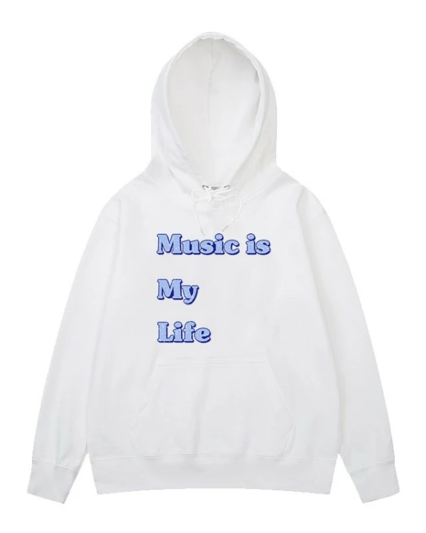 White ‘Music Is My Life’ Printed Hoodie | San – ATEEZ