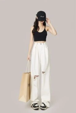 White Ripped Denim Jeans | Danielle – NewJeans