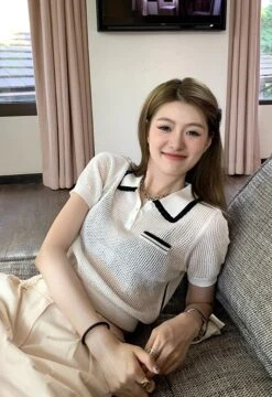 White See-Through Knit Polo Shirt | Minnie – (G)I-DLE