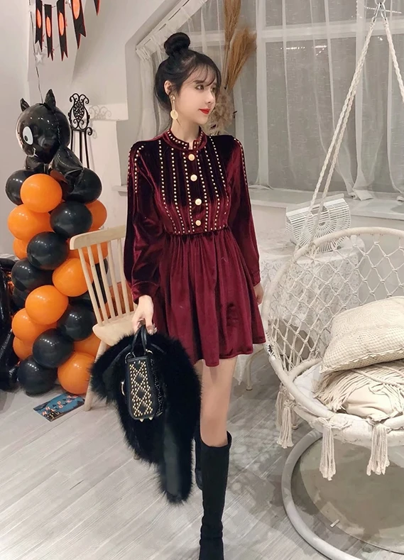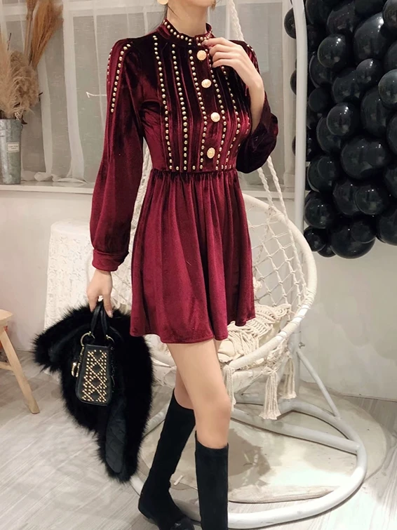 Wine Red Studded Mini Dress | Joy – Red Velvet
